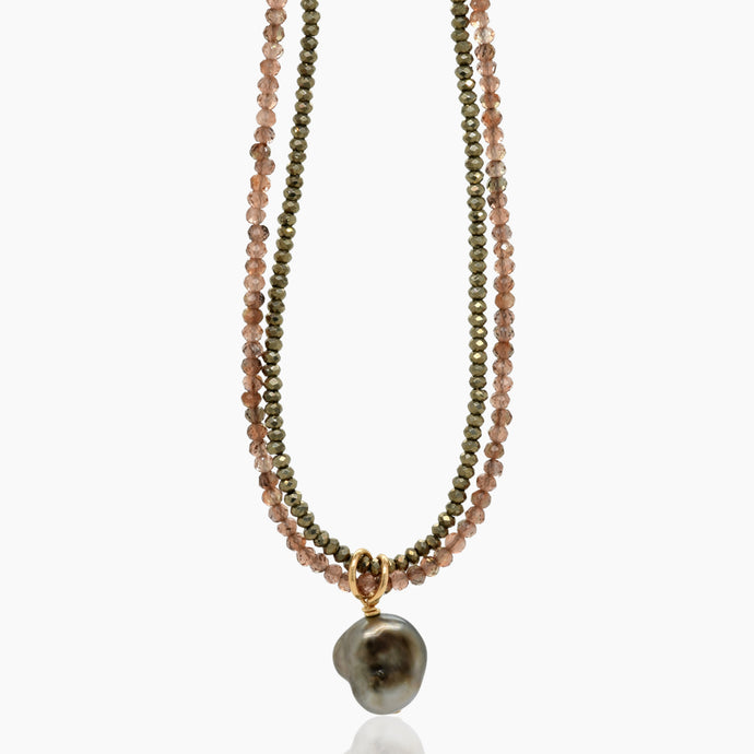 Sapphire with Black Tahitian Pearl Gold Necklace